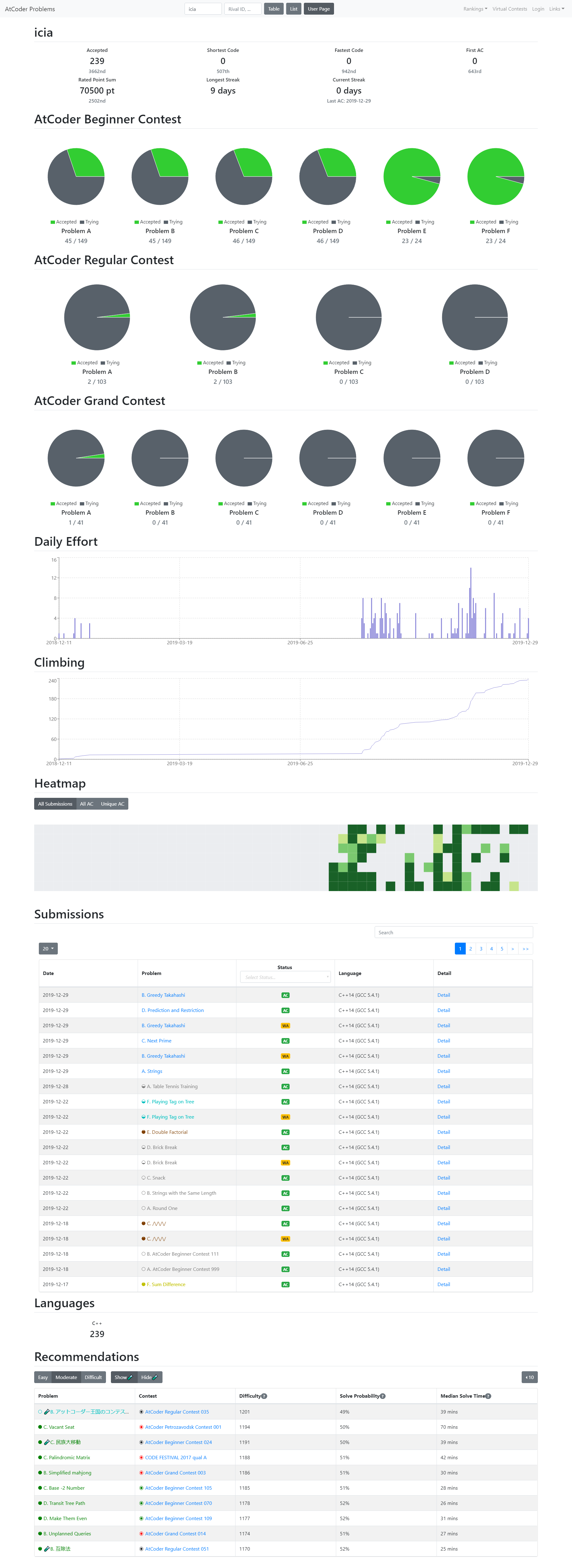 去年はyukicoderも張ったが、今年はAtCoderがメインで、AOJとyukicoderはライブラリの確認とかでしか解いていないのでAtCoderだけ。